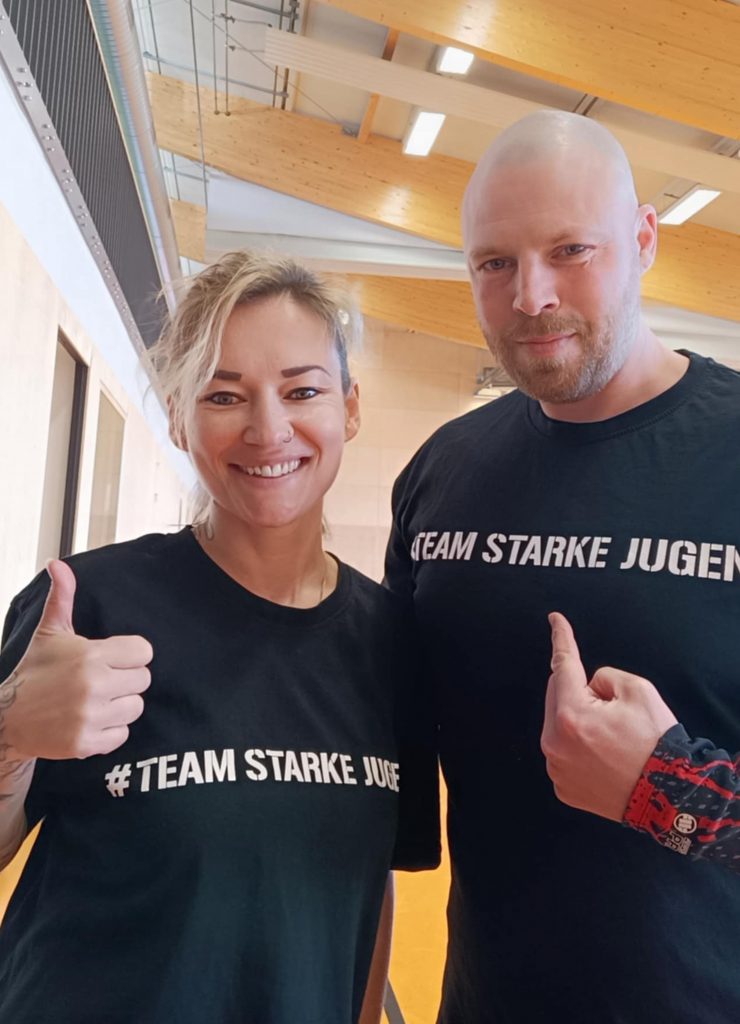 Timo Hilbert, Selbstverteidigungs- & Kampfsporttrainer, Krav Maga Expert Level 2, Fachkraft für Gewaltprävention Linda Bazak, Mobbingpräventionstrainerin, Resilienz- & Lebenskompetenztrainerin nach dem Konzept von „Stark auch ohne Muckis“